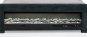 Elevate your bedroom with this sophisticated upholstered bed in a stunning dark blue fabric. Featuring a modern wingback headboard, this bed combines bold style with inviting comfort. The footboard boasts a visual flame box insert for a cozy ambiance, complete with 13 color options, adjustable brightness levels, and a wireless remote control. Crafted from durable birch, plywood, and engineered wood, this bed ensures lasting quality. The integrated Bluetooth speaker enhances functionality, making this bed a modern centerpiece for your space.