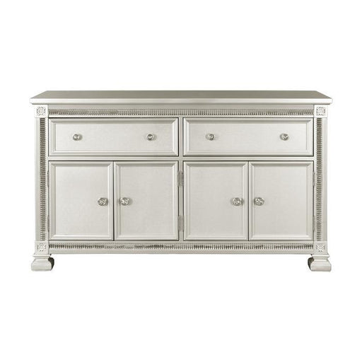 Homelegance (Homerica East)Bevelle Collection by Homelegance Furniture Silver finish Acrylic inset framing 2 Drawers 4 Doors