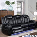 Take your living space to another level with this cozy and futuristic ensemble. Plush backs and arms are adorned with diamond stitching on smooth leatherette. Underneath each arm is extra storage. The main draw here is the LED lights on the bottom of the sofa--lighting that lifts the mood from unexpected to exotic. And underneath the headrest comes a pair of reading lights controlled by a touch of a finger.