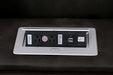 AMIRAH Sofa, 83"L X 39 1/2"W X 40 1/2"H, 286.6lbs. Experience the luxurious comfort and contemporary style of this multi-functional sofa with two recliners. The middle seatback features a drop-down table with reading lights, two cup holders, a USB charging port, and an A,C electrical outlet. The arms lift up exposing a storage compartment with ample storage for remotes, phones, and other accessories. The cover is a soft, luxurious, and durable fabric with an accent stitch to highlight the sleek design.