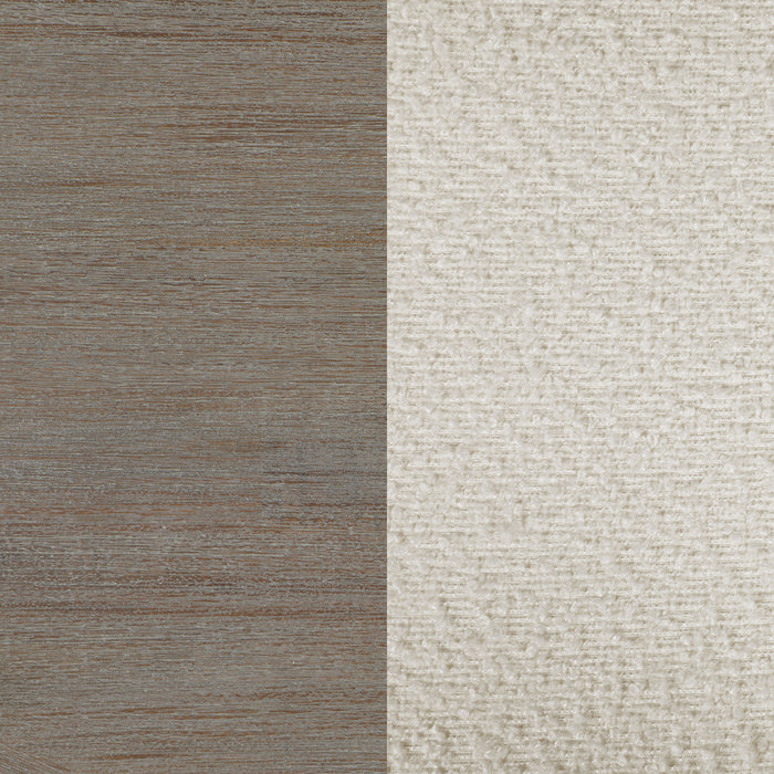 Build an inviting kitchen or dining room with this seven-piece modern farmhouse dining set at its heart. Designed for casual ambiance, it features a rectangular dining table complete with a trestle base with angular details that are sure to draw the eye. A coastal grey finish complements acacia veneer over acacia wood and MDF, creating a strong, durable set that's built to last. The table is a rectangular design to comfortably seat six, perfect for the family or entertaining friends. Six side chairs add modified ladder backs for depth and texture, with creamy upholstery fabric over foam padded seats for exceptional comfort.