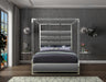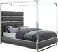 Give your bedroom a modern makeover with this Encore grey faux leather king bed. Eye-catchingly elegant, this bed features a boxy canopy design for a grand presentation in your space. Acrylic posts add a contemporary feel to the bed's overall look, and the heavily padded headboard is upholstered in soft grey faux leather that's durable and tough yet gives the same supple effect as real leather. The matching footboard is also padded for a cohesive presentation in your room.