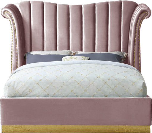 Make a dramatic statement while creating contemporary flair in the bedroom with this breathtaking Flora black velvet queen bed. Featuring a gold metal base upholstered with rich black velvet with gold nailhead accents and channel tufting along the headboard, this gallant bed is sure to command the attention of anyone who enters your bedroom chamber. Its contemporary wing-back design adds a regal presence to your sleeping space, while its generous size ensures you sleep like a king.