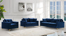 Curl up with a good book from the welcoming confines of this Naomi Navy Velvet Sofa. The color of this sofa adds a bold touch to your decor and shakes up otherwise neutral color schemes. Plush velvet material feels cozy and comfortable against your skin, while deep seat cushions provide lots of room for you to stretch your legs. This sofa comes with both gold and chrome legs, so you can customize its look to meet your decor plans. Pillows are included for added homey warmth and comfort.